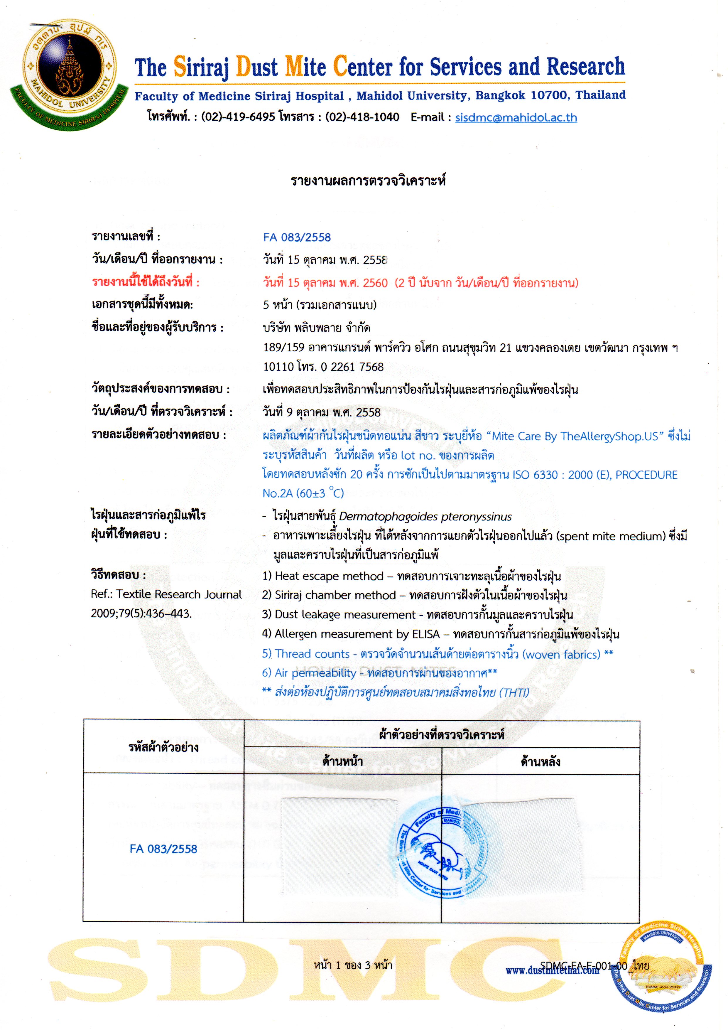 mitecare ผ้าป้องกันไรฝุ่น
